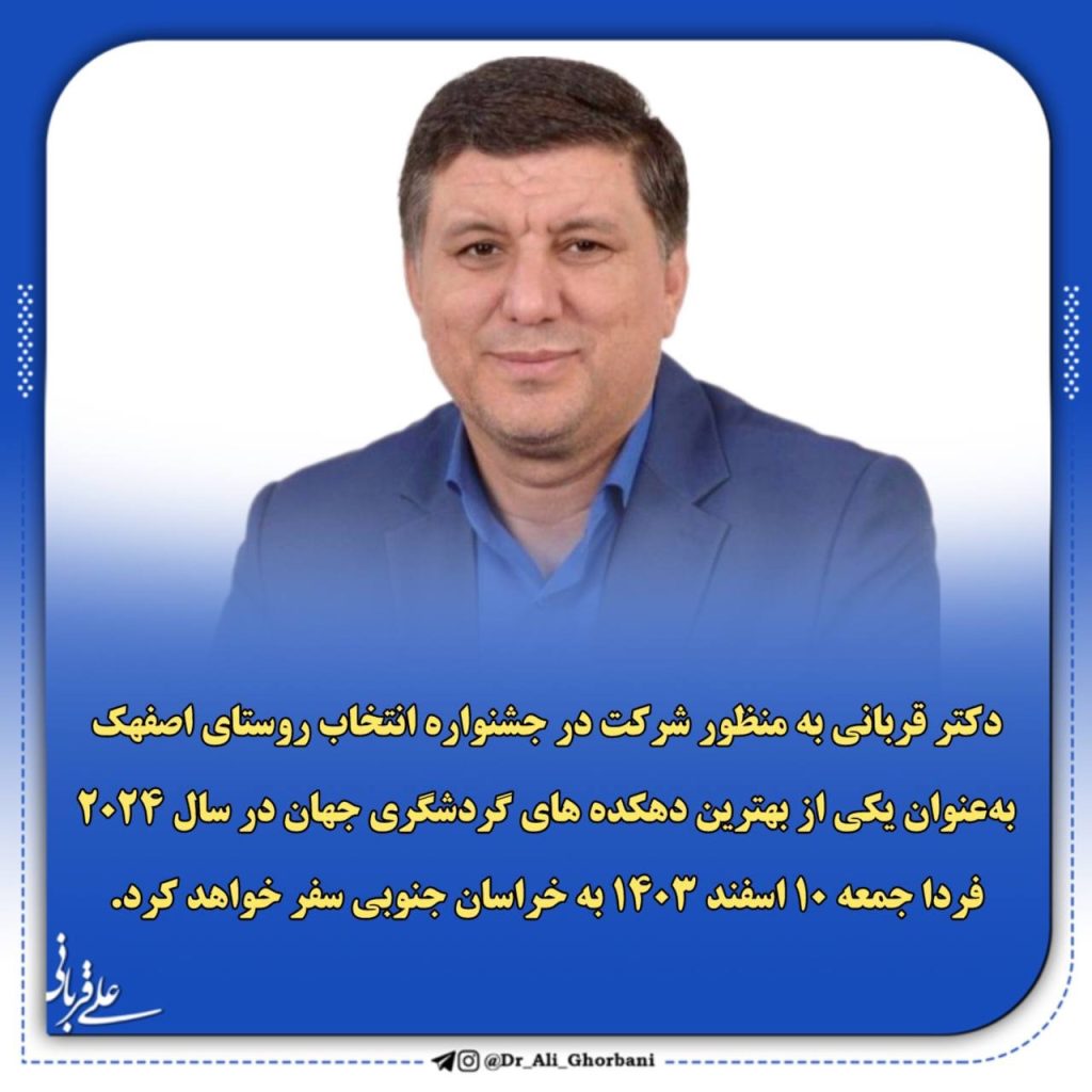 دکتر علی قربانی، معاون امور دهیاریهای سازمان شهرداریها و دهیاریهای کشور، به منظور شرکت در جشنواره انتخاب روستای اصفهک بهعنوان یکی از بهترین دهکدههای گردشگری